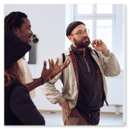 In meiner Arbeit erschaffe ich hybride Ausdrucksformen, die sowohl afrikanische als auch europäische Kultur miteinander verbindet.